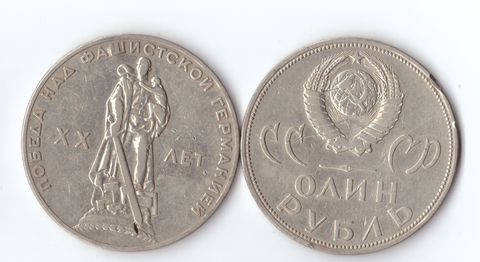 1 рубль 1965 года 20 лет Победы в ВОВ 1941 - 1945г.г. (есть дефекты) G-VG