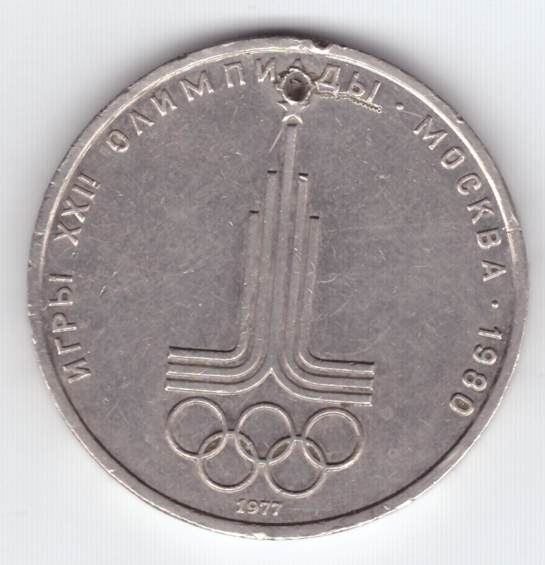 1 рубль 1977 года Олимпиада - 80 (Эмблема)/ Есть отверстие VF