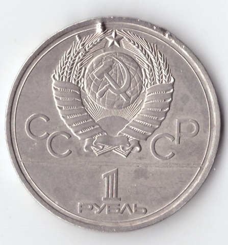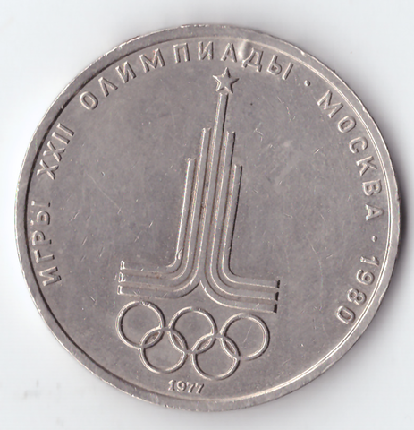 1 рубль 1977 года Олимпиада - 80 (Эмблема). На гурте просверлено несколько отверстий VG
