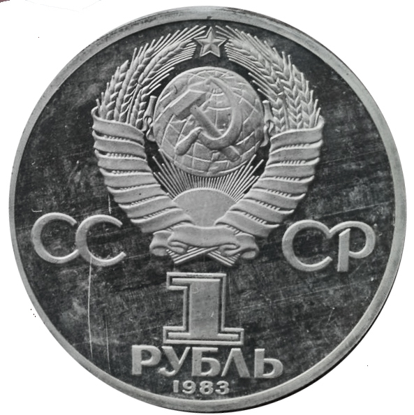 1 рубль 1983 год "165 лет со дня рождения Фридриха Энгельса" (PROOF, Новодел). Ошибка в дате