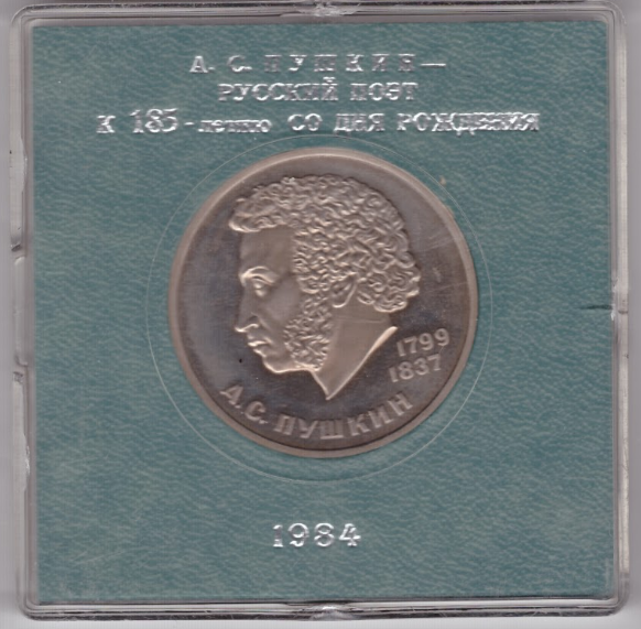 1 рубль 1984 год "185-летие со дня рождения А. С. Пушкина" (PROOF, Стародел)