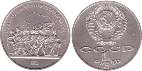 1 рубль 1987 года Бородино (Балельеф) XF-AU