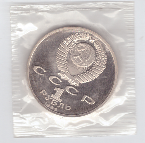 1 рубль 1989 года 175 лет со дня рождения М. Ю. Лермонтова (в запайке) PROOF