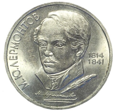 1 рубль СССР 1989 года 175 лет со дня рождения М. Ю. Лермонтова XF-AU