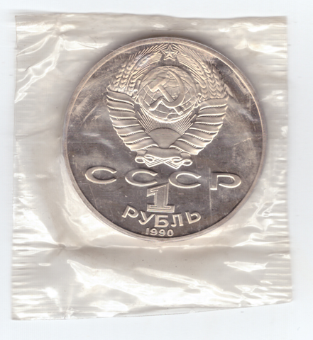 1 рубль 1990 года 125 лет со дня рождения Я. Райниса (в запайке) PROOF
