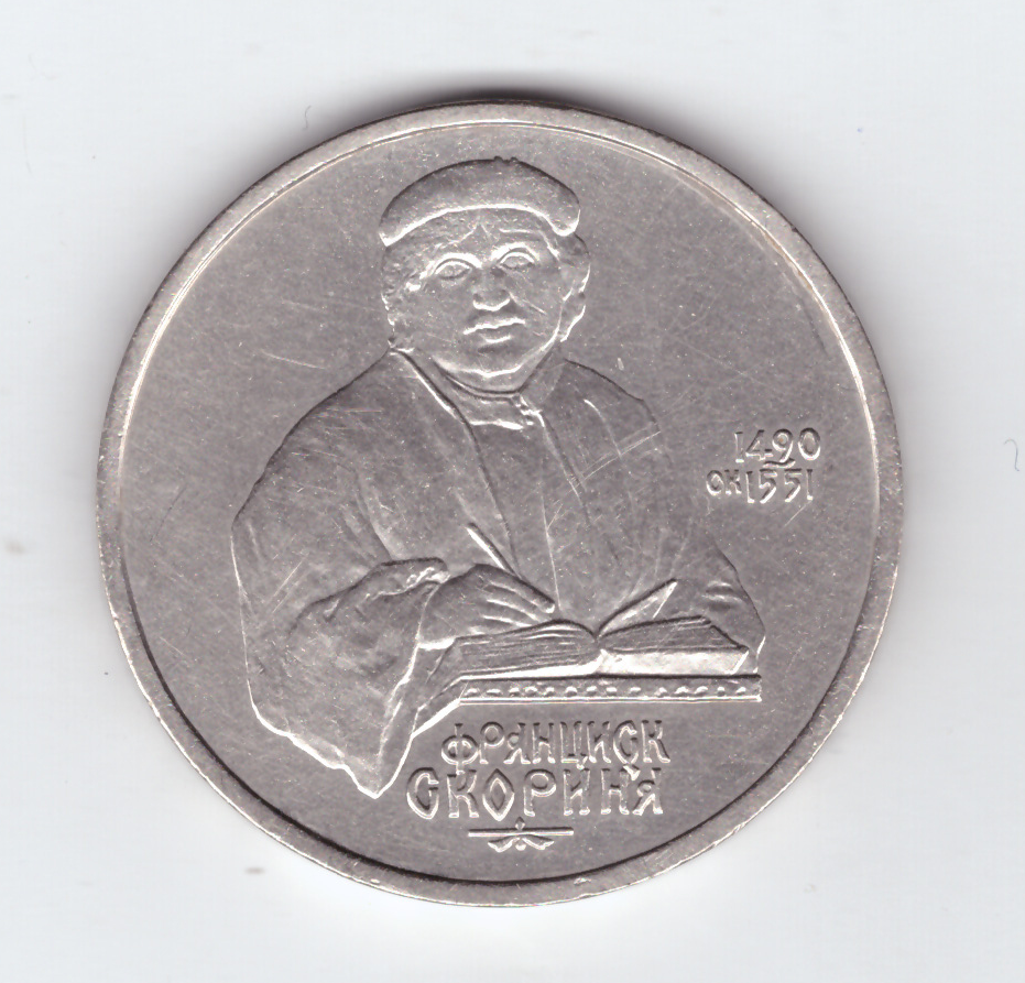 1 рубль 1990 года 500 лет со дня рождения Ф. Скорины (есть царапины) XF- №2