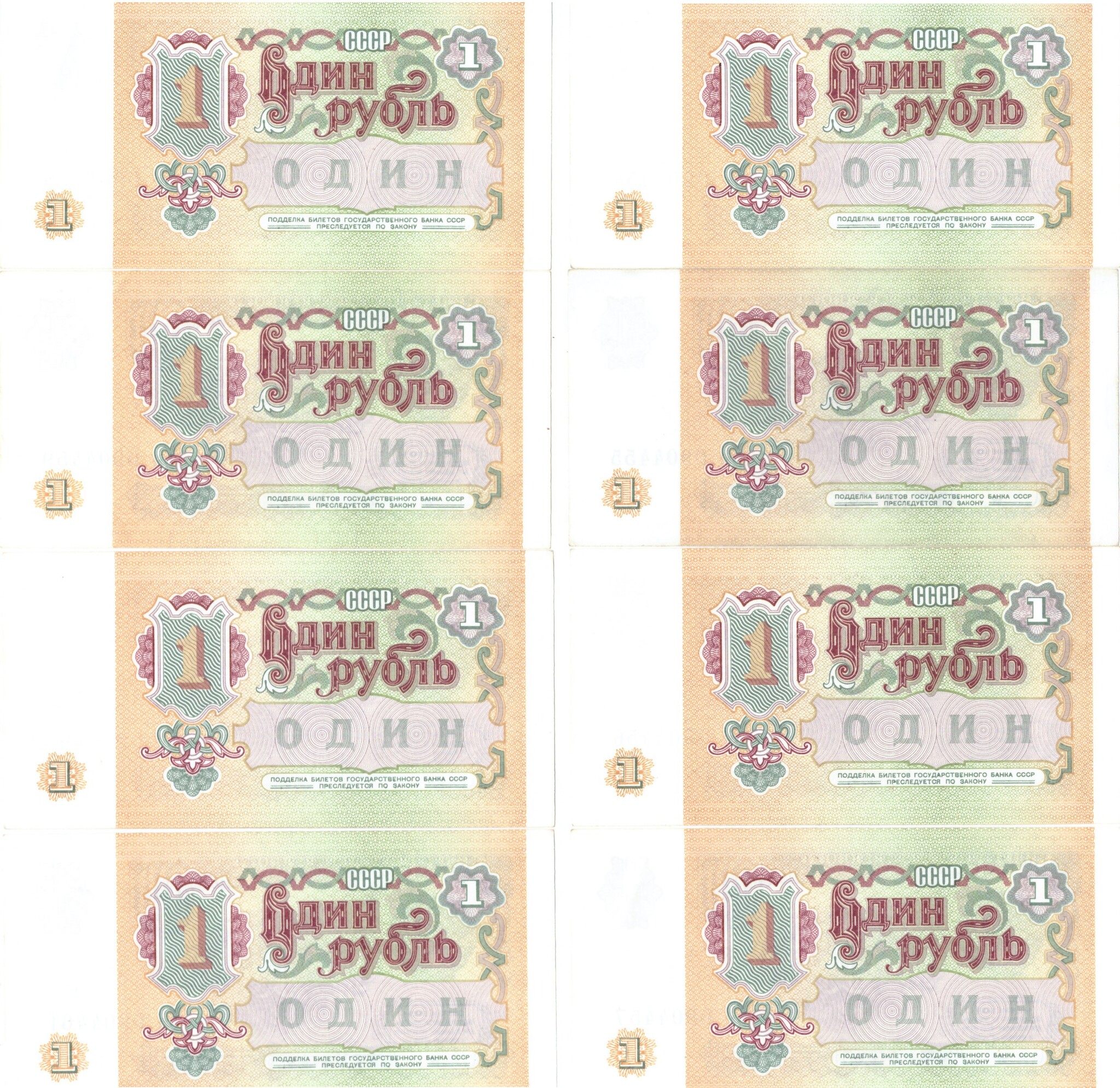 1 рубль 1991 г. 8 шт. ЕЗ 0904454-61. Номера подряд. Пресс. UNC