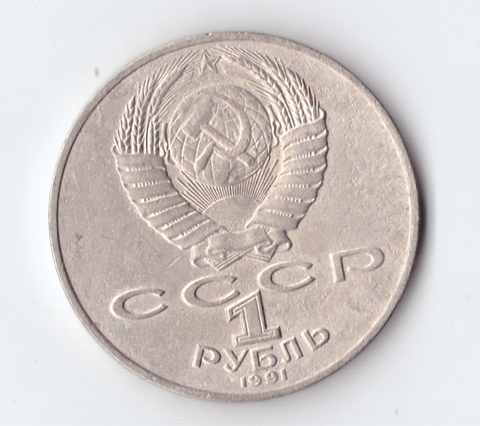 1 рубль 1991 года 550 лет со дня рождения А. Навои (дефект поверхности) XF-