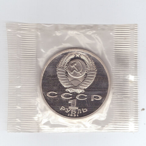 1 рубль 1991 года 850 лет со дня рождения Н. Гянджеви (в запайке) PROOF