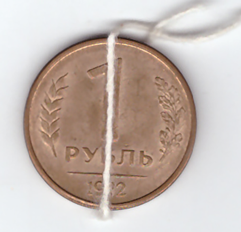 1 рубль 1992 года Л (Брак - поворот аверс/реверс примерно на 75 градусов) VF