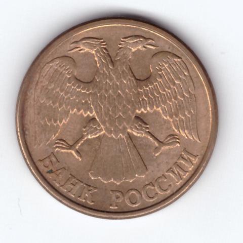 Аверс: в середине двуглавый орел с опущенными крыльями, внизу надпись «БАНК РОССИИ».