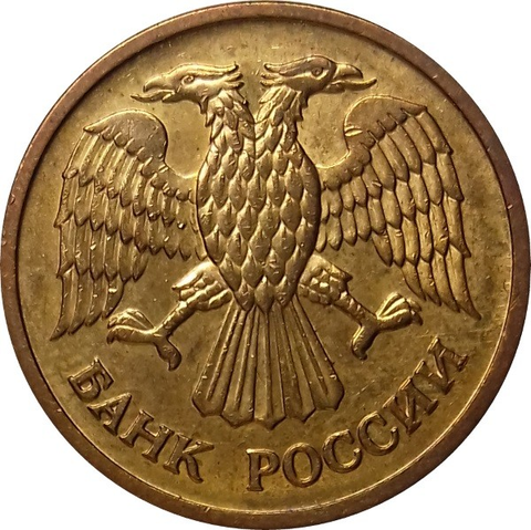 Аверс: в середине двуглавый орел с опущенными крыльями, внизу надпись «БАНК РОССИИ».