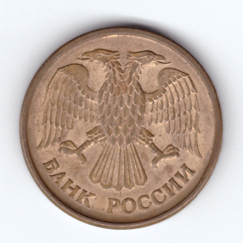 Аверс: в середине двуглавый орел с опущенными крыльями, внизу надпись «БАНК РОССИИ».