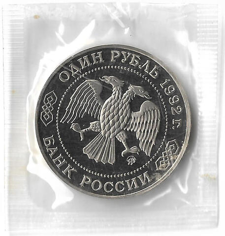 1 рубль 1992 ММД ''200 - летие со дня рождения Н.И. Лобачевского'', в родной запайке (Proof)