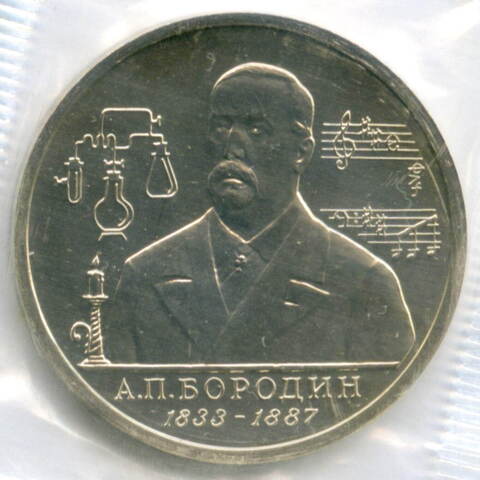 1 рубль 1993 год. 160 лет со дня рождения А.П. Бородина. АЦ в родной запайке
