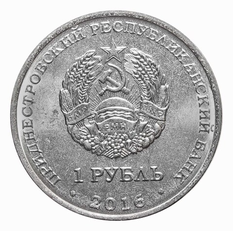 Аверс: в центре – изображение Государственного герба Приднестровской Молдавской Республики; по кругу – надписи: вверху – «ПРИДНЕСТРОВСКИЙ РЕСПУБЛИКАНСКИЙ БАНК», внизу – год выпуска монеты «2016»; в нижней части под гербом – номинал «1 РУБЛЬ».