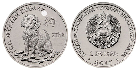 1 рубль 2017 г. Год Желтой Собаки (2018) Серия: Китайский гороскоп. Приднестровье. ПМР. UNC