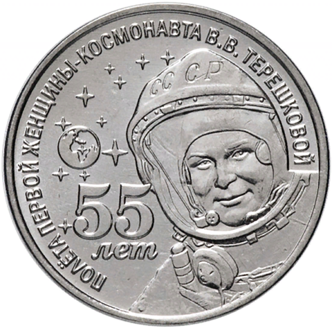 1 рубль 2018 г. В.В. Терешкова - 55 лет полета первой женщины.
