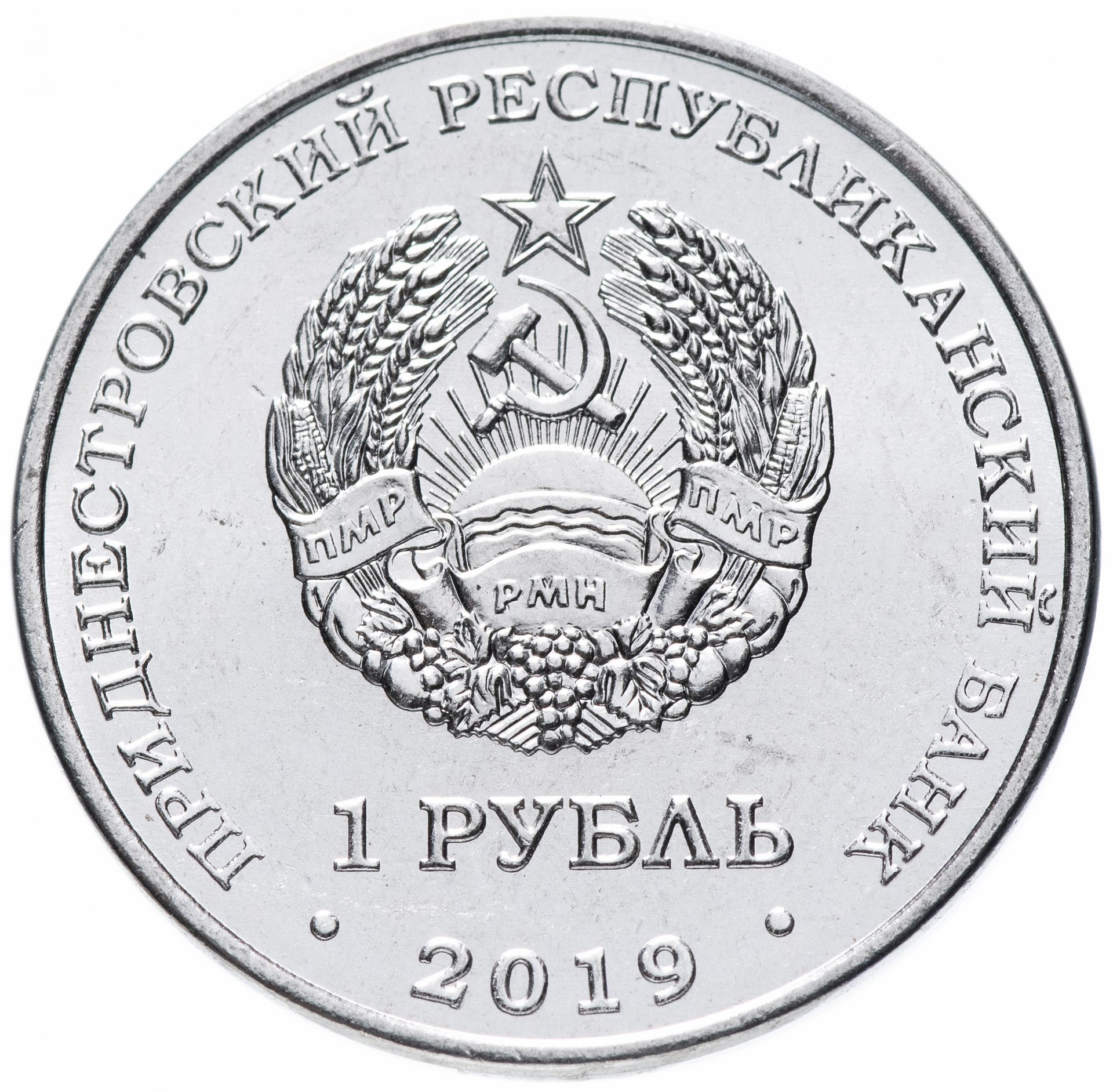 Аверс монеты: в центре – изображение Государственного герба Приднестровской Молдавской Республики; по кругу – надписи: вверху – «ПРИДНЕСТРОВСКИЙ РЕСПУБЛИКАНСКИЙ БАНК», внизу – год выпуска монеты «2019»; в нижней части под гербом – номинал «1 РУБЛЬ».