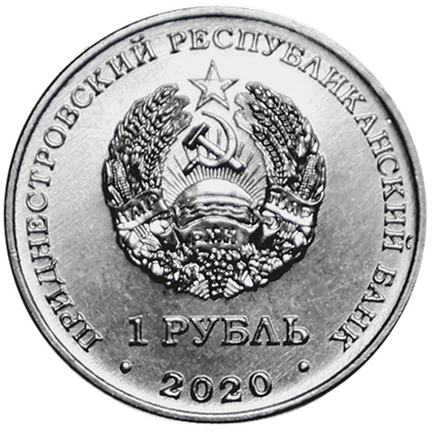 Аверс: в центре находится изображение государственного герба Приднестровской Молдавской Республики. По кругу надписи: вверху – «ПРИДНЕСТРОВСКИЙ РЕСПУБЛИКАНСКИЙ БАНК», внизу – «2020». В нижней части под гербом указан номинал «1 РУБЛЬ».