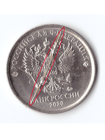 1 рубль 2020 года. Брак - полный раскол штемпеля XF