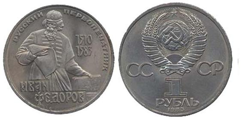 1 рубль 400 лет со дня смерти русского первопечaтника Ивана Федорова 1983 г.