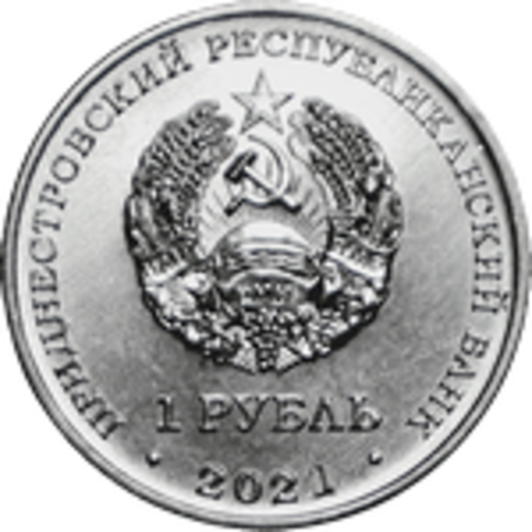 Аверс монеты: в центре – изображение Государственного герба Приднестровской Молдавской Республики; по кругу – надписи: вверху – «ПРИДНЕСТРОВСКИЙ РЕСПУБЛИКАНСКИЙ БАНК», внизу – год выпуска монеты «2021»; в нижней части под гербом – номинал «1 РУБЛЬ».