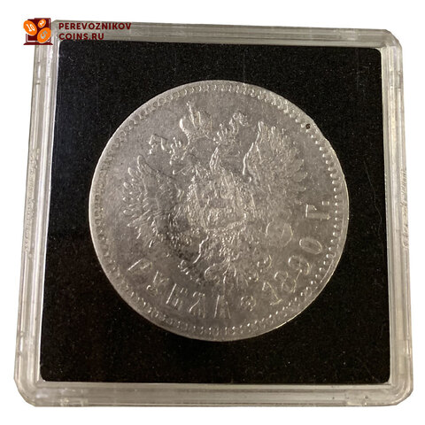 Аверс: в середине Малый Государственный Герб Российской империи, под ним вдоль края монеты, разделенные розеткой, номинал «РУБЛЬ» и год выпуска монеты «1890 Г.».