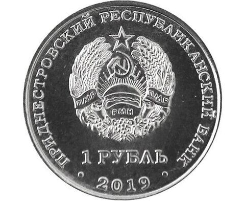 Аверс: в центре – изображение Государственного герба Приднестровской Молдавской Республики; по кругу – надписи: вверху – «ПРИДНЕСТРОВСКИЙ РЕСПУБЛИКАНСКИЙ БАНК», внизу – год выпуска монеты «2019»; в нижней части под гербом – номинал «1 РУБЛЬ».