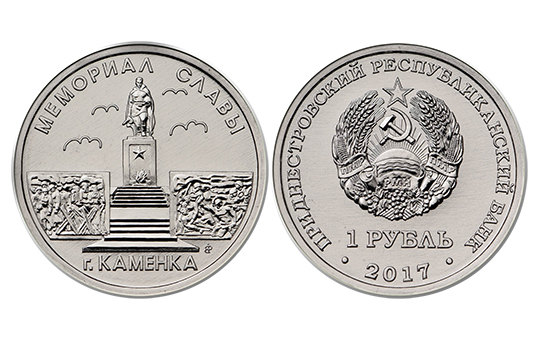 1 рубль города ПМР. " Мемориал Славы" Город Каменка. Приднестровье. 2017 год