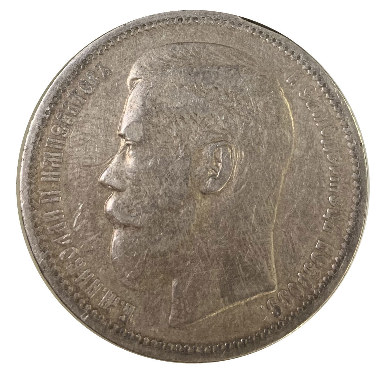 Реверс: слева вдоль края монеты надпись «Б.М. НИКОЛАЙ II ИМПЕРАТОР», справа вдоль края монеты надпись «И САМОДЕРЖЕЦ ВСЕРОСС.», в середине обращенная влево голова Императора Российской империи Николая II