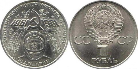 1 рубль Ю. А. Гагарин (20 лет космического полета) 1981 г.