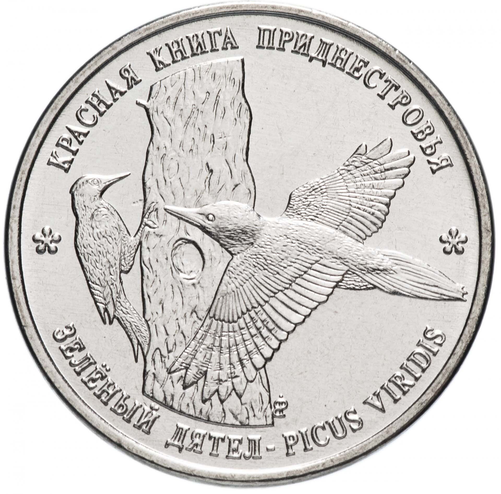 1 рубль. Зеленый дятел. Серия - Красная книга Приднестровья. Фауна. 2018 год