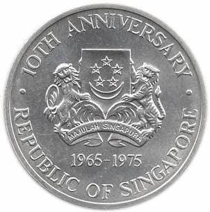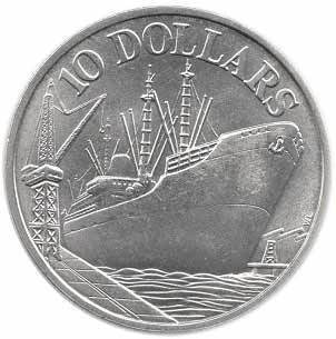 10 долларов. 10 лет Независимости. Серебро. 1975 год. XF+