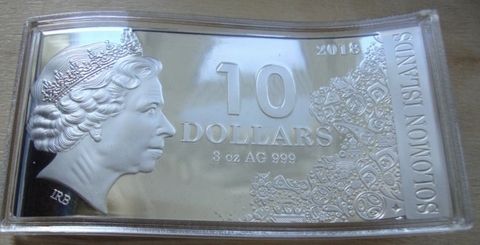 10 долларов. Чемпионат мира по футболу в России. Соломоновы о-ва. Серебро. 2018 год