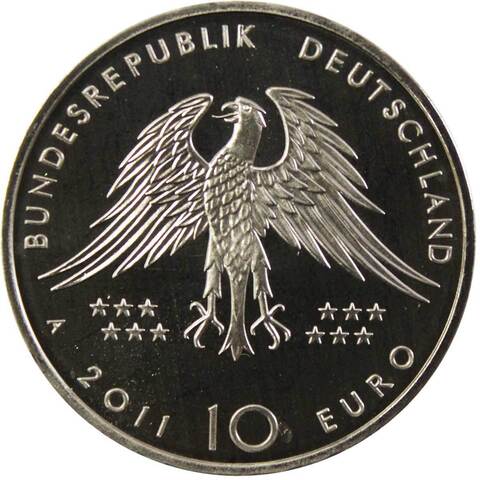 10 евро. 150 лет открытию Археоптерикса (А). Германия. Медноникель. 2011 год