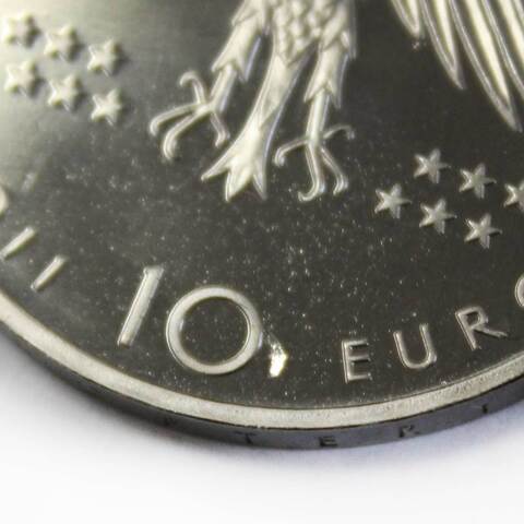 Аверс: изображен герб Германии. Снизу расположены 12 звезд Евросоюза, указаны номинал и год выпуска монеты. По окружности нанесена надпись «Bundesrepublik Deutschland».