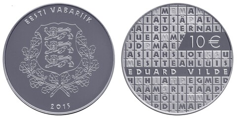 10 евро 2015 год. Эдуард Вильде. Эстония. Серебро