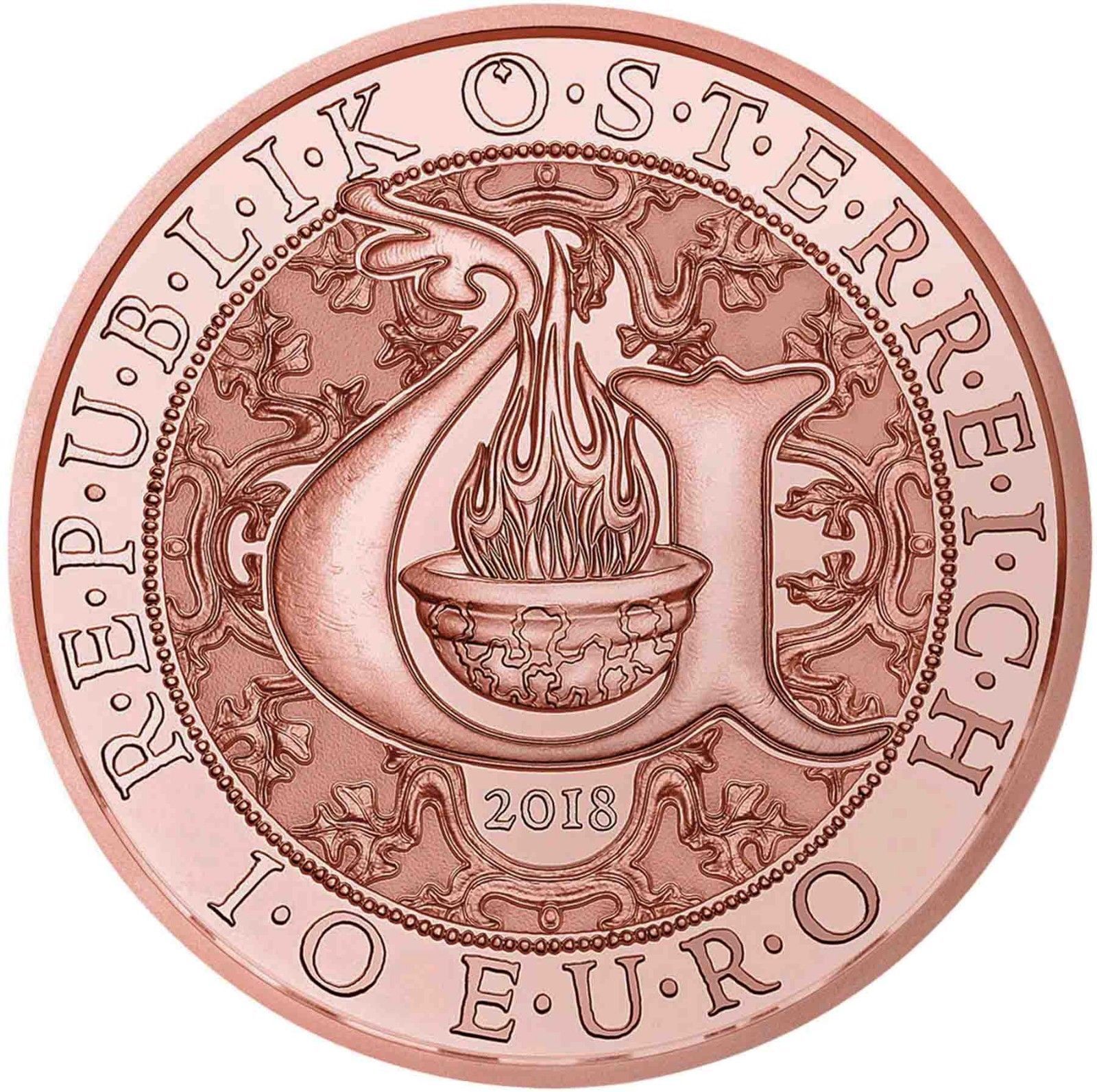 Четвёртая памятная медная монета 10 евро Австрия 2018 из серии "Ангелы-хранители".