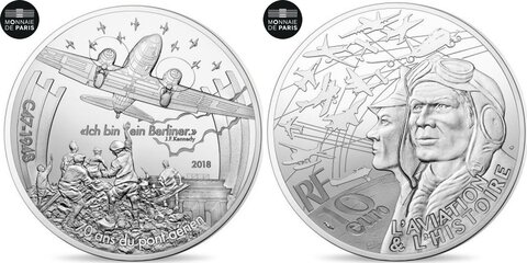 10 евро 2018 год Самолет Дакота C47. История французской авиации. Война. Франция. Серебро