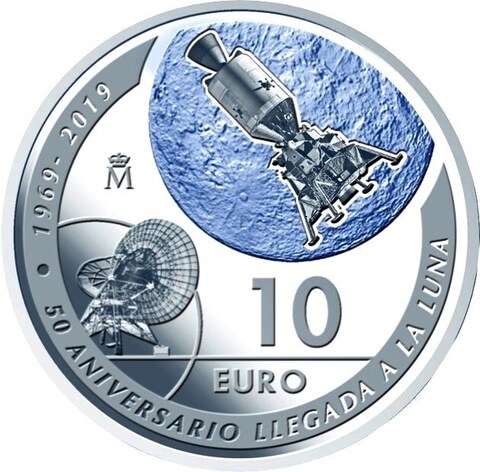 10 евро. Высадка на Луну 1969 Космос. Испания. 2019 год