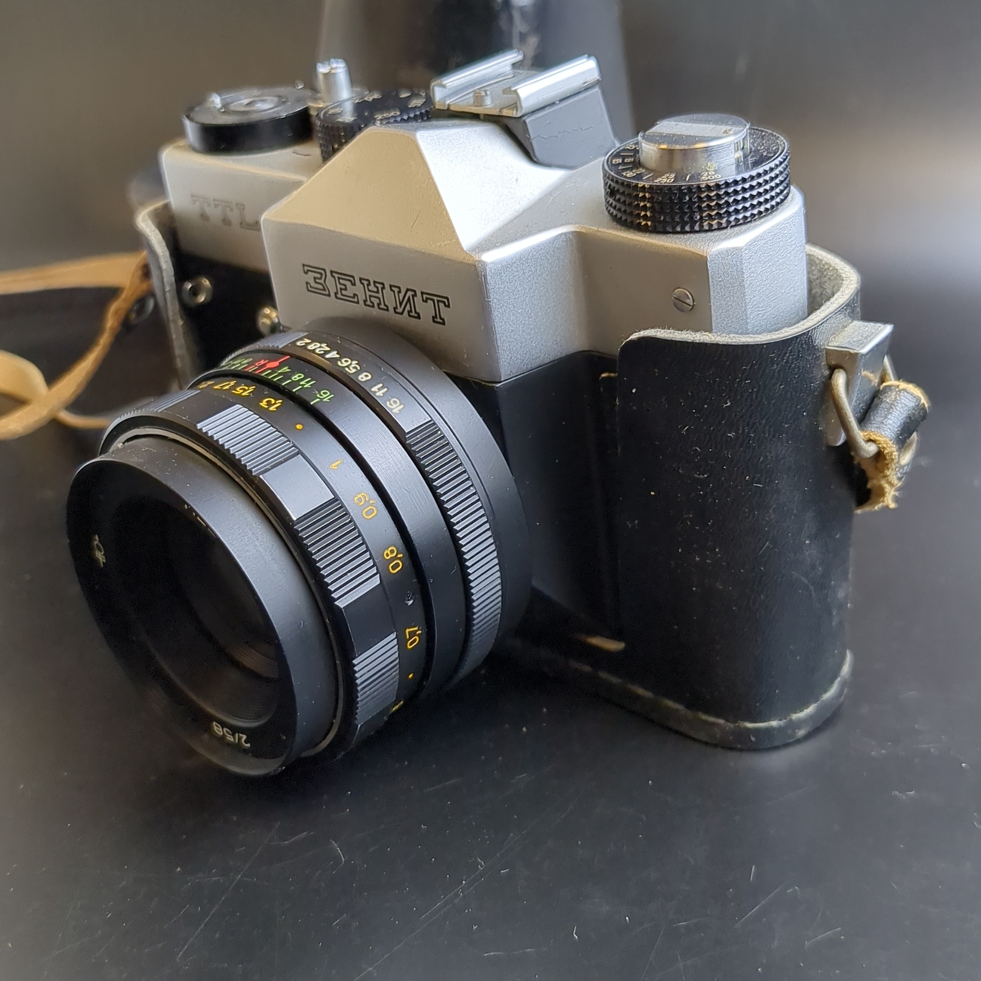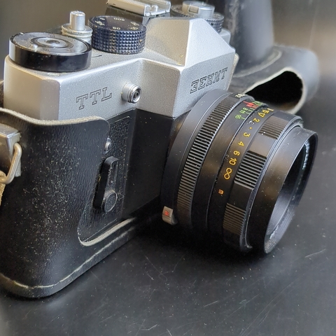 №10 Фотоаппарат плёночный "Зенит-TTL" c объективом "Гелиос-44М" , металл, пластик, стекло, искусственная кожа, Красногорский механический завод (КМЗ), СССР, 1977-1985 гг.