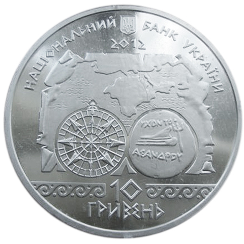 На аверсе монеты в центральной части изображена стилизированная карта Крыма и южного берега Украины, на ее фоне слева изображена роза ветров, как символ путешествий и мореплавания, и и старинная монета Боспорского царства справа. Между ними немного ниже обозначен номинал монеты (10 гривен), а от него в обе стороны расходится меандровая лента. В верхней части монеты полукругом надпись “Національний банк України”, герб Украины и под ним год чеканки монеты (2012).