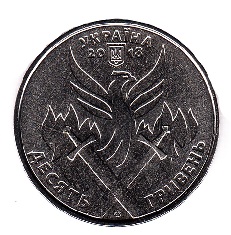 внизу – логотип Банкнотно-монетного двора НБУ и полукругом номинал – “10/Гривень”.