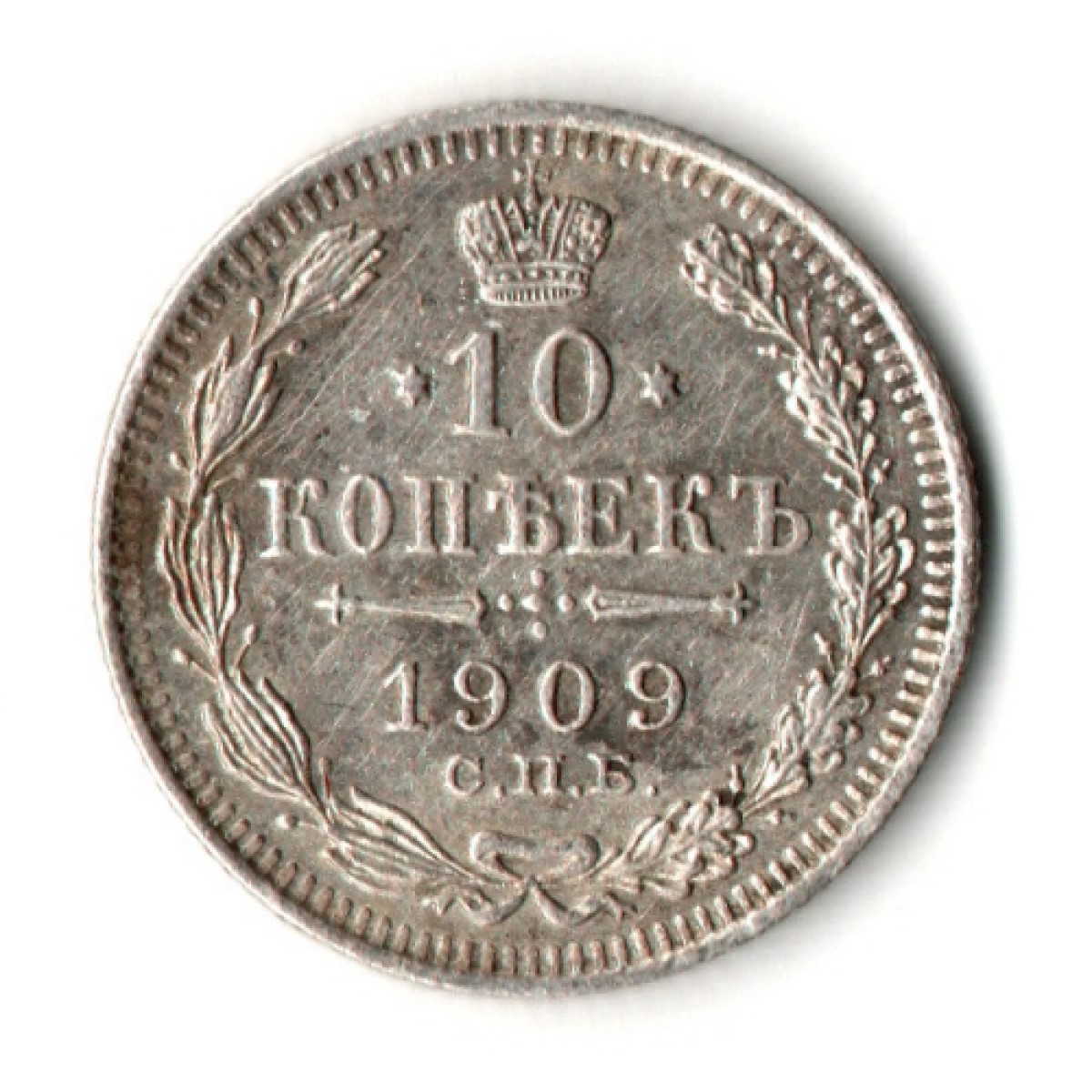10 копеек 1909 год - СПБ - ЭБ - Николай II - Царская Россия