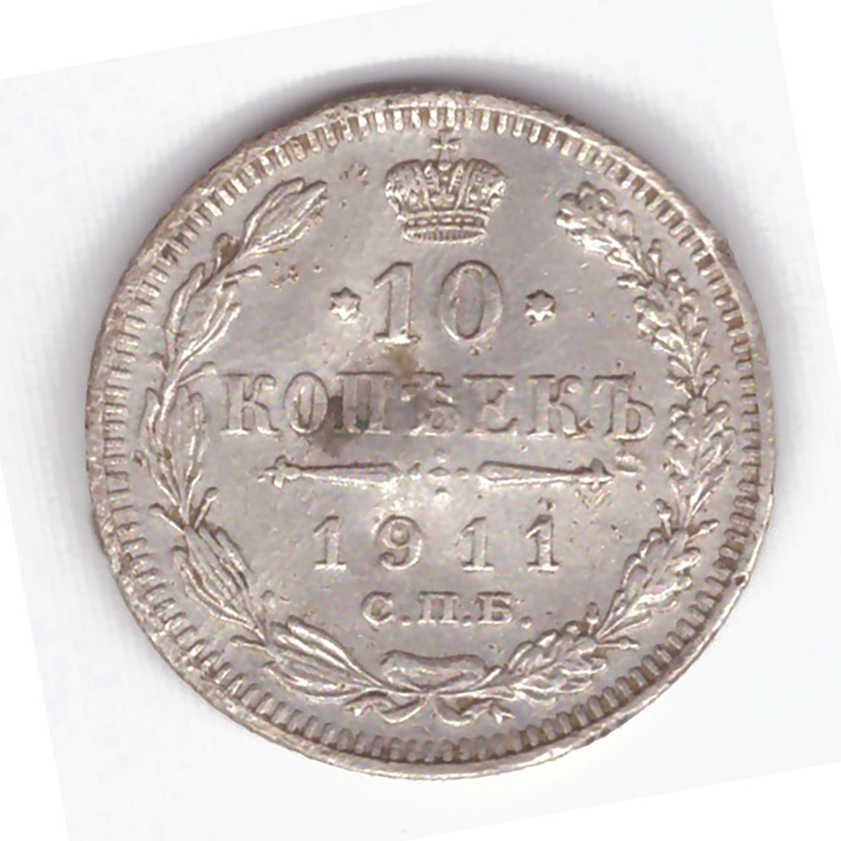 10 копеек 1911 года СПБ ЭБ (Монета погнута) F