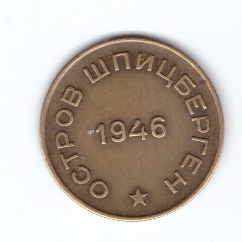 Аверс: В центре указана дата выпуска - "1946". По окружности, вдоль канта, надпись: "ОСТРОВ ШПИЦБЕРГЕН". Внизу - пятиконечная звезда.