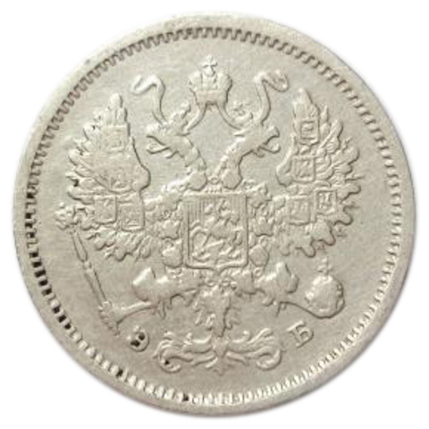 Аверс: в середине Малый Государственный Герб Российской империи, внизу вдоль края монеты слева и справа от хвоста орла инициалы минцмейстера «ЭБ».