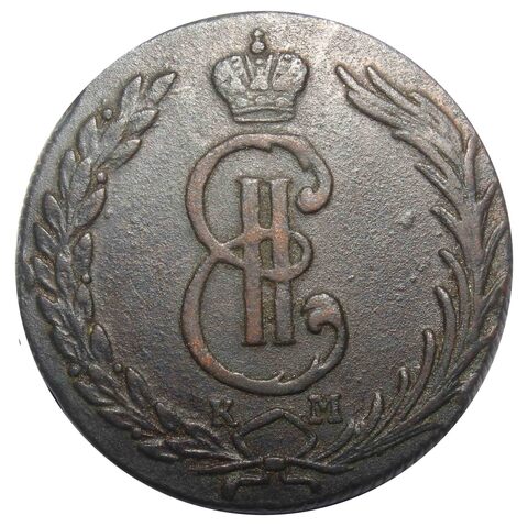 На аверсе монеты изображён упрощённый вензель Екатерины II, составленный из буквы "Е" (Екатерина) и римской цифры "II". Наверху императорская корона. Под вензелем буквы "К М" (колыванская медь). Изображения окружают две ветви, связанные внизу бантом.