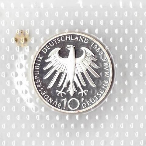 10 марок. 100 лет со дня смерти Карла Фридриха Цейса (F) Германия. Серебро. 1988 г. PROOF. В родной запайке